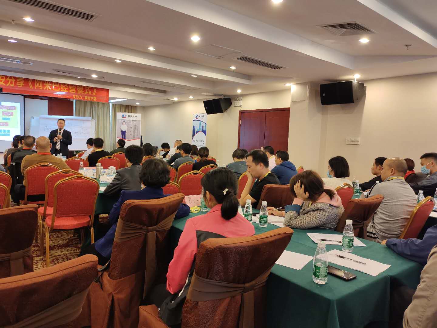 《人人成为经营者——阿米巴经营系统班》于2020年10月29日-30日在万安县万安湖大酒店举行,本次课程由何金财老师主讲,近80名学员齐聚一堂,全神贯注地投入,共同汲取阿米巴经营智慧,探索企业健康长青的秘诀。